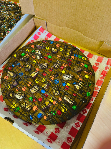 One Full Pound of Chocolate Topped with your favorite flavors. Wrapped and presented in a real pizza box. Perfect for housewarming or just a night in. Toppings may differ slightly from images.